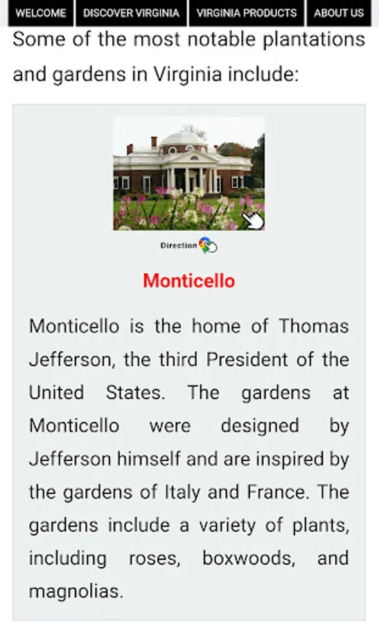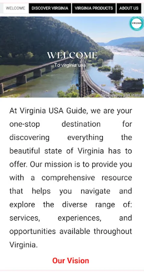 "Welcome to 'Discover Virginia,' your gateway to uncovering the rich tapestry of the Old Dominion State. This application is your trusted companion on a journey through the diverse landscapes, vibrant culture, and hidden gems that define Virginia. From the historic streets of Williamsburg to the stunning vistas of the Blue Ridge Mountains, 'Discover Virginia' is your key to unlocking the beauty, history, and adventure that await in every corner of this remarkable state. Join us as we embark on an exploration of Virginia's past, present, and future, all at your fingertips."