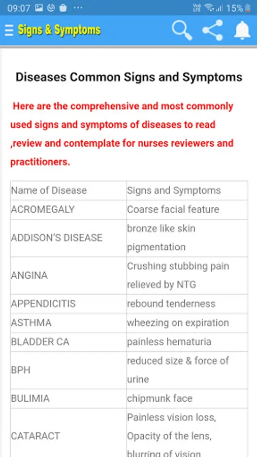Diseases Common Signs Symptoms | Nursing Handbook