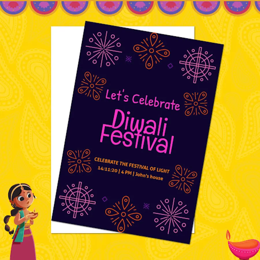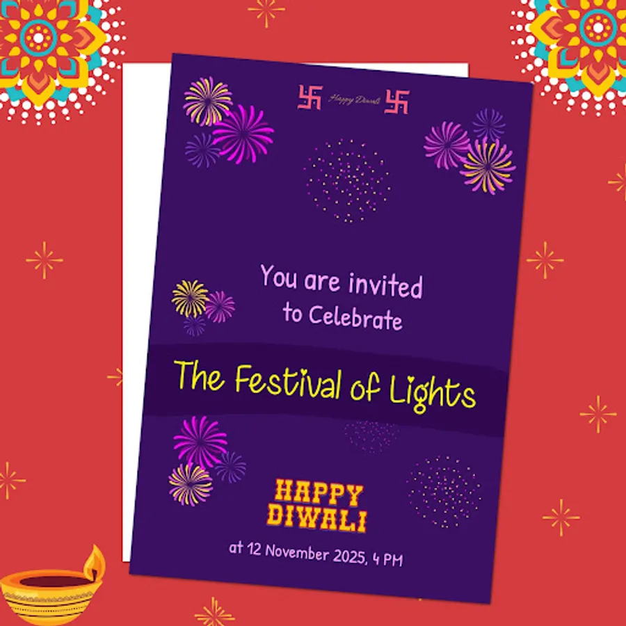 If you are planning to have a Diwali party then use our diwali invitation cards maker to create stunning diwali invitation cards. People wont resist coming to your Diwali party.