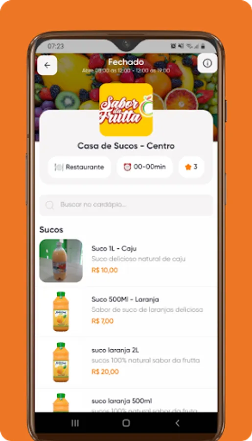 That's it!!!. The “Sabor da Fruta” delivery app came to serve customers with a special touch and more agility. It is our purpose to generate more value for customers and partners, through differentiated service, more competitive rates and the satisfaction of winning their preference.