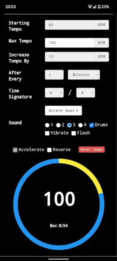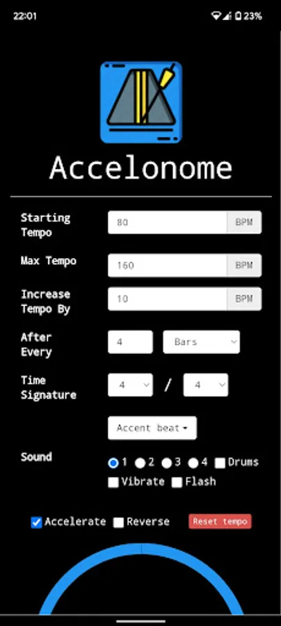 An accelerated metronome app to make the best of your practice time!