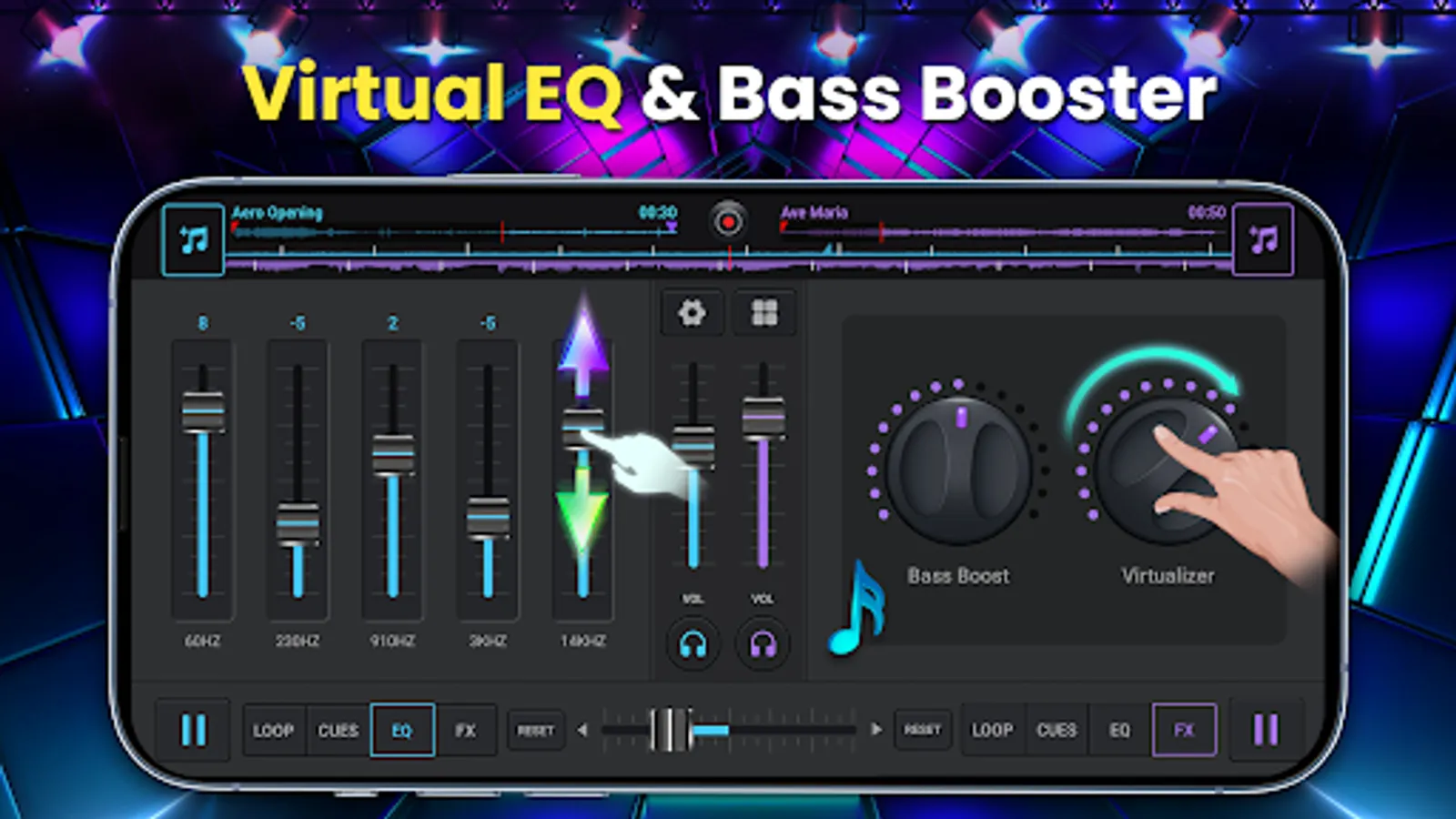 DJ Music Mixer - DJ Mixer is an excellent virtual DJ mixer and music mixer app to Mix you favorite music dj remix and add sound effects with a real dj player and dj song Equalizer. With the professional dj controllers, such as EQ adjustment, mash, loop, add cues, scratching, and synchronization bpm, DJ Music Mixer helps you transforms your device into a real DJ setup and stretches the limits of djing on mobile. Whether it's practicing at home or going out with friends, it can achieve perfect mixing effects with DJ Music Mixer. 🎹