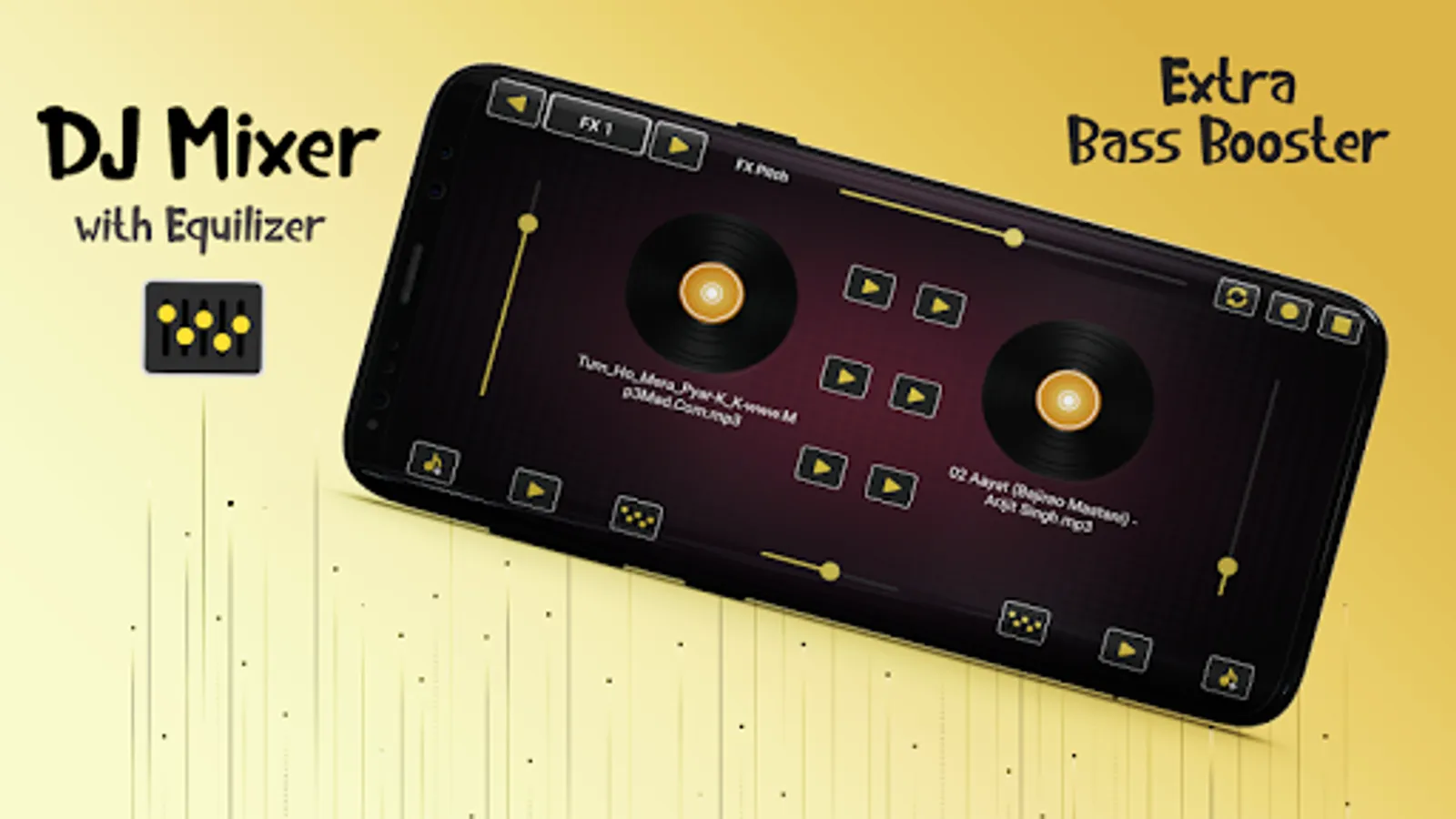 Virtual DJ Mixer: DJ Mixer Board & Song Mixture has All your Mixed Tracks Record to Play, Share & Delete. Use Bass Booster to Modify your track's sound effects. It has handy UI to Mix Your own Music & be a Best DJ Mixer in your Group. Virtual DJ Mixer gives you Mixing your own songs on DJ Mixer Board.