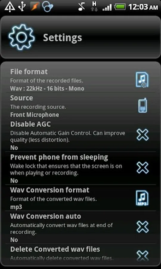 - Disable AGC (Automatic Gain Control) for better sound quality (android > 2.1)