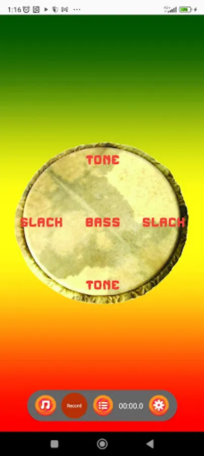 the fundamental 'pe': the drum is struck on the side of the membrane with the fingers held tight together;