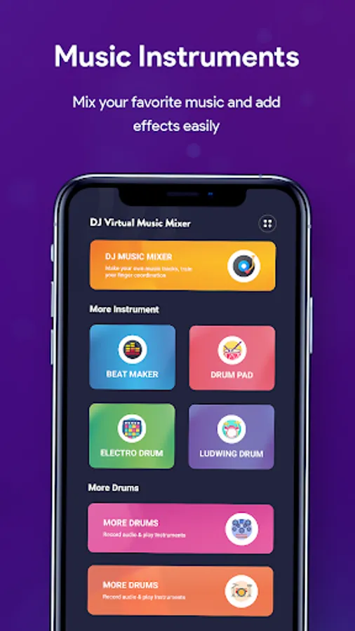 With this virtual DJ Virtual Music mixer in the DJ turntable style, you can mix music on your phone or tablet. Equalizer & DJ Studio Music allows you to play two songs at the same time from your Memory stick.
