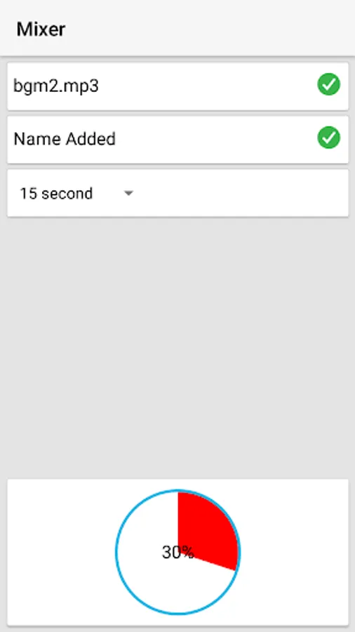 After mixing complete, new dialog will be shown with two buttons play and cancel. Select what you want.