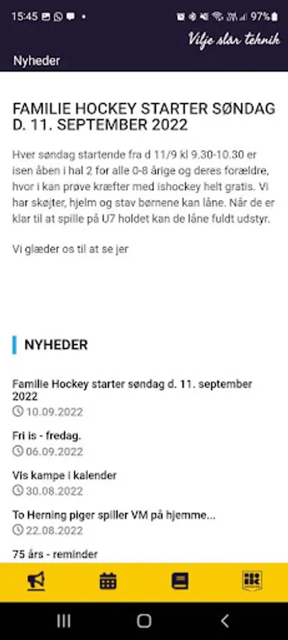 Herning IK is an app that has been developed for Herning Ice Hockey Club (HIK) members with the aim of providing quick access to current information.