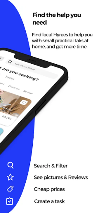 As a customer at Hyree, you can get your practical tasks in your home solved on a trustworthy and effective way. You can either find local Hyrees that matches your criteria and needs or create a task and let local Hyrees request to solve it. Our app connects you with local Hyrees in no time, for cheap prices. Our Hyrees offer following services: