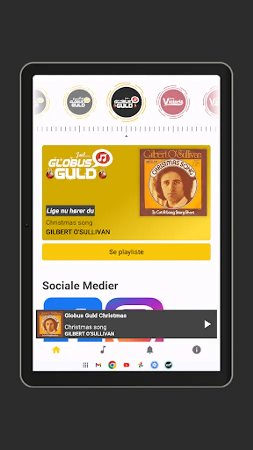 With this app you can listen to your favorite station, Globus Guld Jul, anytime on your iPhone. Globus Guld Jul gives you lots of guaranteed singing, popular radio programmes, interviews, podcasts and much more. This app also allows you to listen to Globus Gold, Globus Gold Evergreens, Globus Gold Christmas, Radio Globus, Radio Viva, Radio Victoria and Victoria Christmas.
