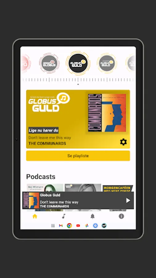 With this app you can listen to your favorite station, Globus Guld, anytime on your iPhone. Globus Guld gives you lots of guaranteed singing, popular radio programmes, interviews, podcasts and much more. This app also allows you to listen to Globus Guld Country, Globus Guld Evergreens, Globus Guld Jul, Radio Globus, Radio Viva, Radio Victoria and Victoria Christmas.