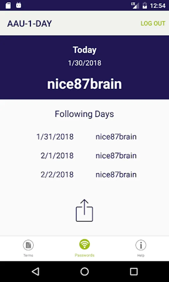 Then this app will be helpful. When logged in with your AAU-login, the app provides you the opportunity to see todays and the three following days passwords for the guest network and share these passwords by text or email.