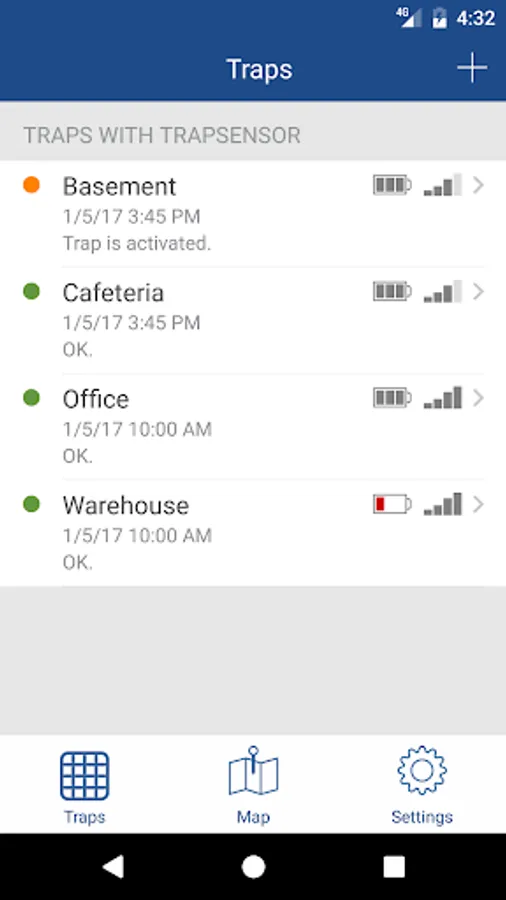 TrapSensor is a rat trap with electronics inside which constantly monitors the trap status. TrapSensor notifies you via push, email and/or text message whenever the trap shuts. This app lets you manage your device settings and also monitor your traps 24/7. TrapSensor units are waterproof and battery driven.