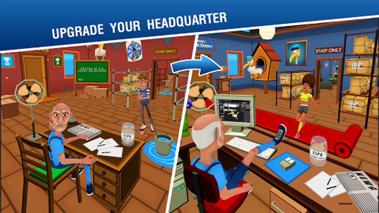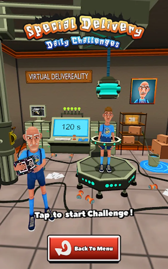 Try the new fun game mode Virtual Delivery-ality. Beat grandpas daily challenges and unlock new surprises. Rush the virtual world and race through crazy new obstacles in Grandpas virtual machine.