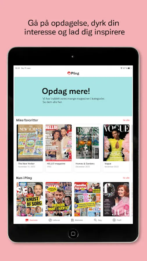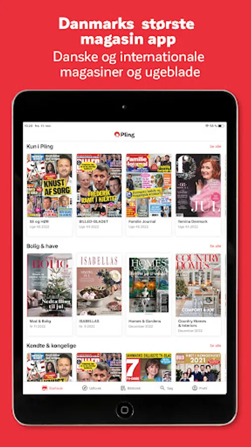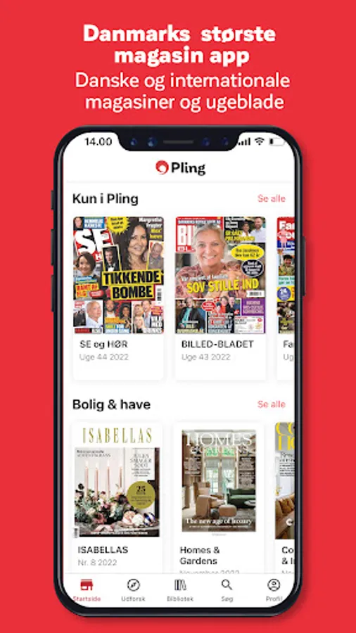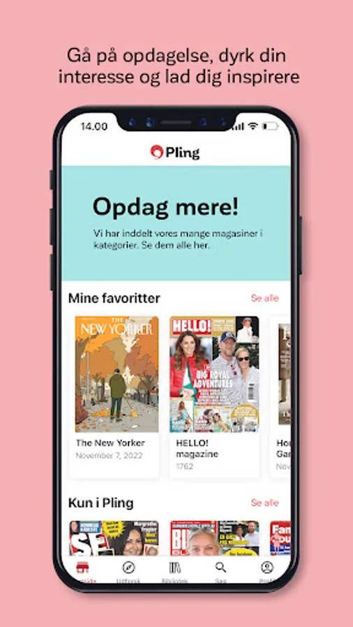 Once you've found the magazines and newspapers you love to read, you can easily save them to your personal library. Then you can explore the over 1,000 Danish and international magazines and newspapers that you have access to in Pling.