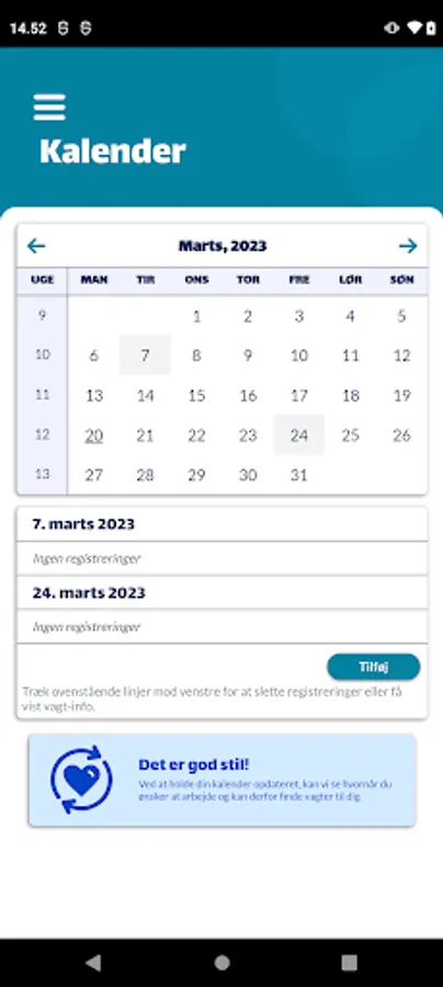 As a substitute at Altid Vikar, this app gives you direct access to all your calendar, watchlists, payslips and all the other tools that give you the necessary overview. Now also when you are on the go.