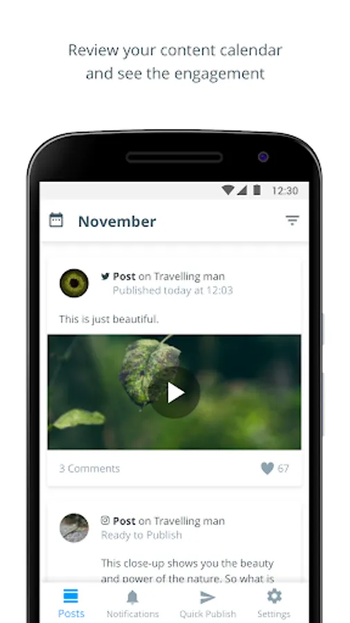 * Calendar feed - see all scheduled or published content across all your social channels.