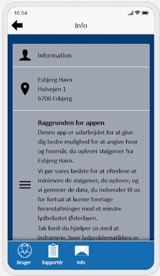 This app is designed to allow you to better indicate where and when you experience noise nuisance from the Port of Esbjerg.