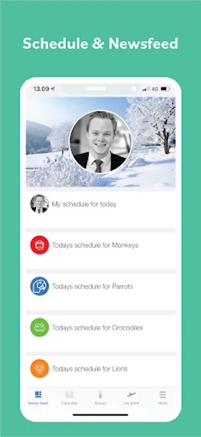 - Absence registration with vacation and sickness