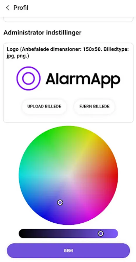 Your company / domain gets your own universe and settings in the app (colors and logo). Can be tested for free for 30 days, then licenses must be purchased. See more at alarmapp.dk