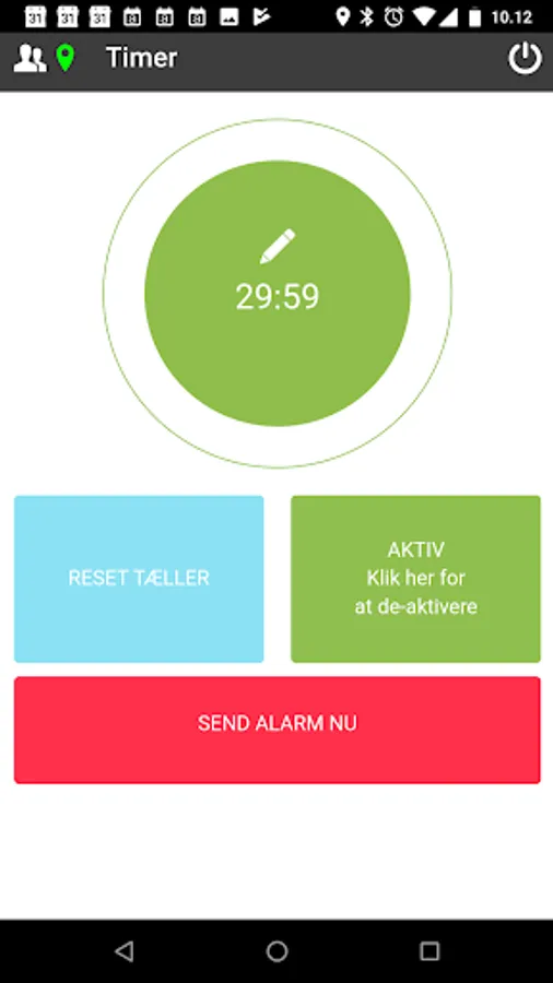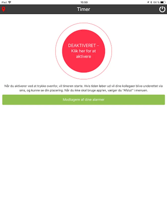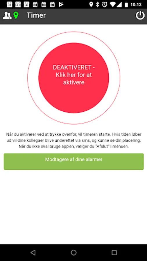 The app sends an SMS to the employee's position if the timer in the app runs out before de-activated.