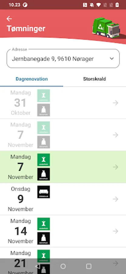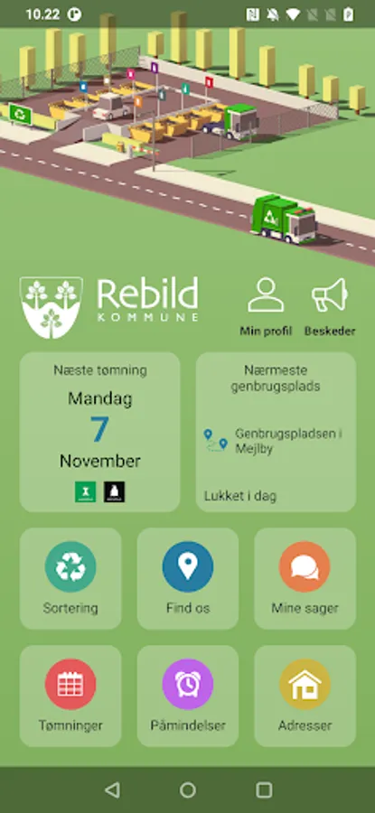 Rebild Municipality's waste app, where you can quickly and easily send a message to the Waste Office about e.g. failure to empty or collect bulky waste. The app contains information about the recycling sites and a sorting guide.