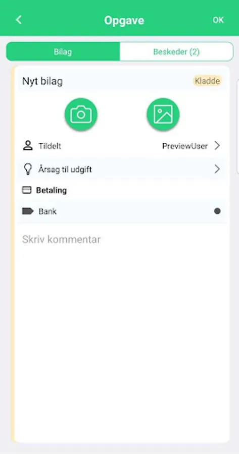 Azets Scan is your easy solution for managing attachments. You can take pictures of your vouchers or invoices and send them directly to your accountant with the option of choosing department, project, cause and payment method.