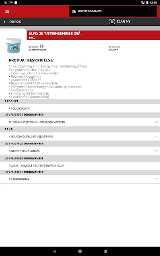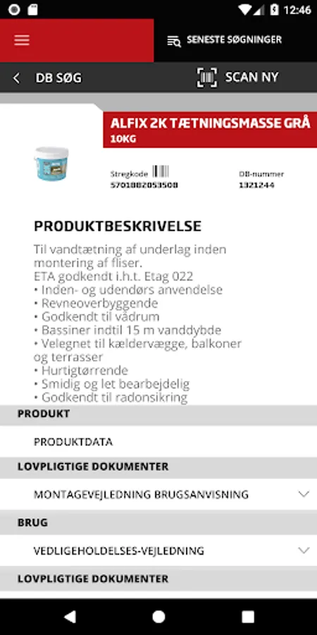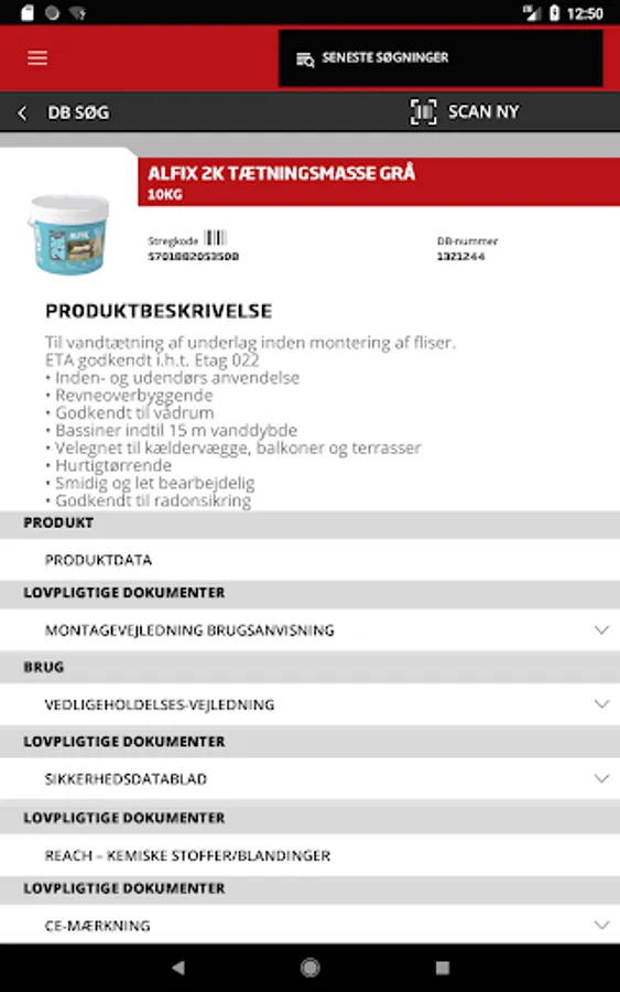Bygma produktdata giver dig mulighed for at se detaljerede sikkerhedsoplysniger og informationer omkring produkter i produktdatabasen. Søg ved hjælp af varens EAN nr., DB nr eller scan stregkoden på produktet vha kameraet.