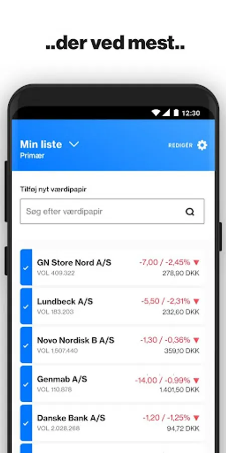 At Denmark's leading independent stock and investor site, you get real-time stock quotes, news as they emerge, experienced experts' views on what drives the markets, and the opportunity to put together your own portfolios and watchlists to keep track of your favorite stocks. And it's all free. We make it simple so you can make the choices that make the most sense to you as a private investor. For we know that the one who knows most earns the most.
