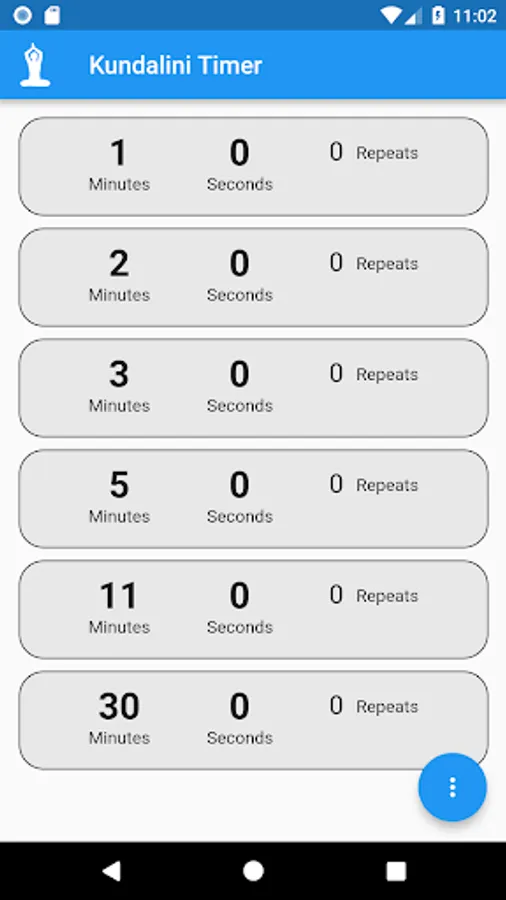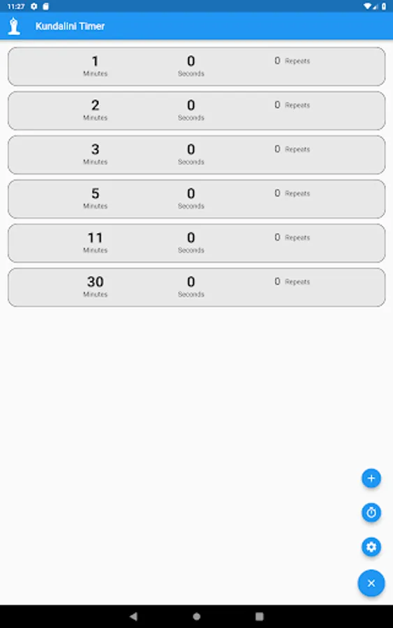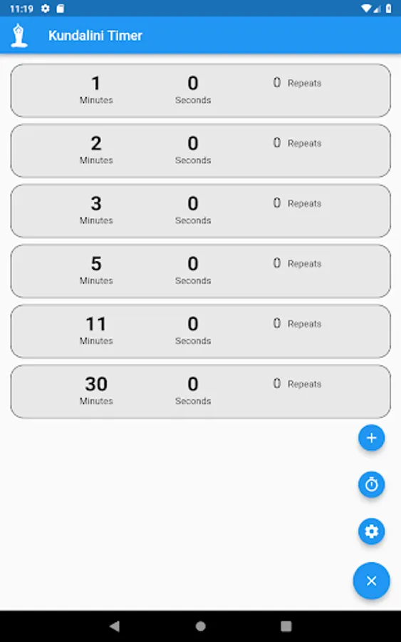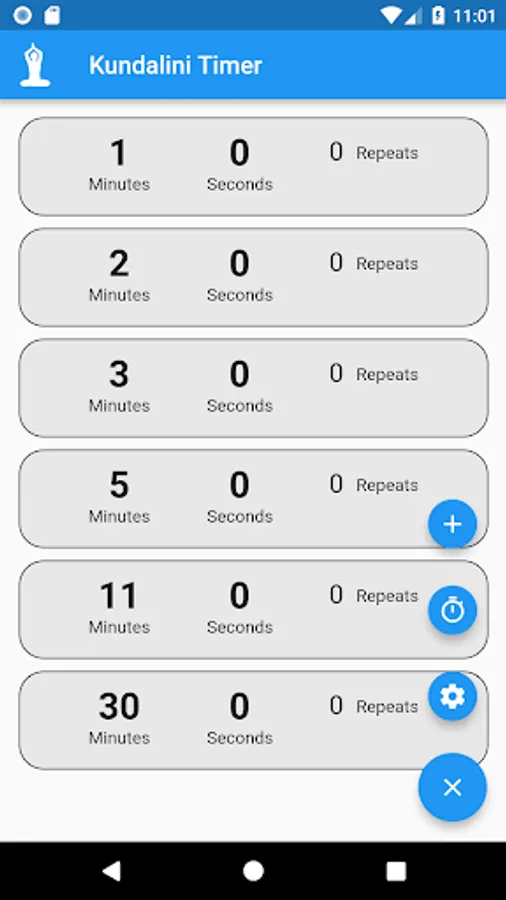 You can define unlimited number of timers with specification of number of minutes, seconds and repeats of the timer. Also to set a delay in between the repeats.