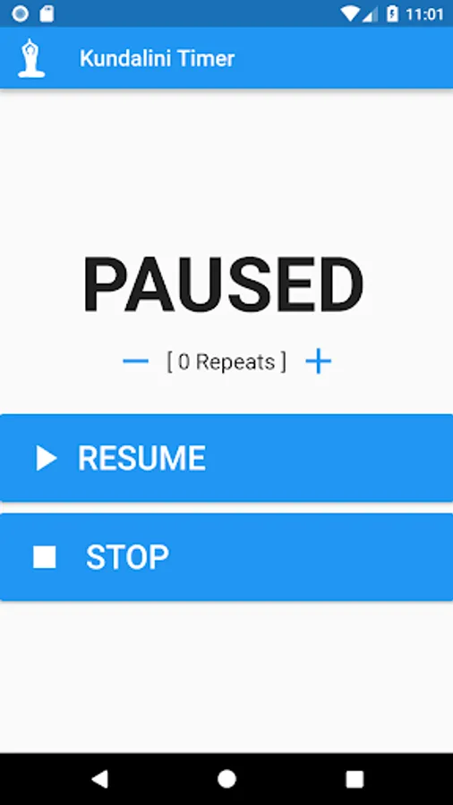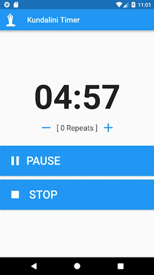 When the timer is done a gong will be played once ( can though be turned off and use vibration instead ). No need of turning the timer off so you can focus on your yoga pass.
