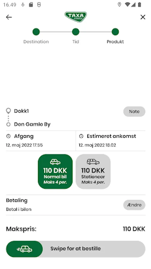 When your order is completed, you will receive a reference number. You will be notified when the car is on its way, and you can follow the car on the map and see the car number.