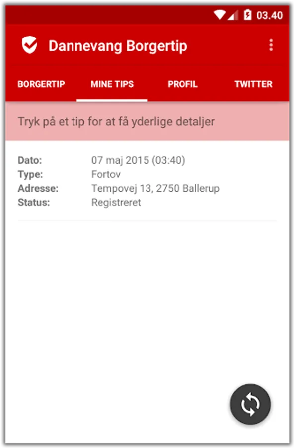 Under My Tips you can see the status of your alerts and follow the municipality's handling of the damage. The municipality has the ability to send you a message and can indicate when the damage is either rejected or repaired.