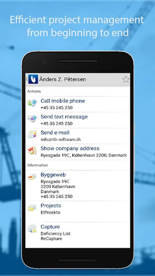 Get direct access to the contact information of everyone you share the project with as well as everyone in your own company who is a Docia user. You can sort easily by people, companies or projects. In just a few clicks, you can quickly: