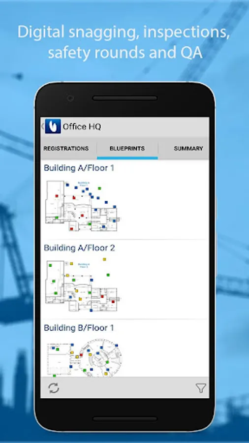 The app gives you direct access to all of the deficiency lists in which you participate. You can quick and easy register deficiencies, add photo-documentation, mark an area directly on the photo and add comments. You can also place the deficiency registration on floor plans of each storey.