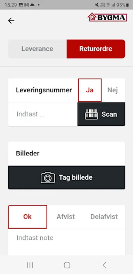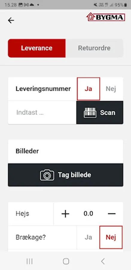 With Bygma's Driver app, our drivers can register and document all deliveries. It gives customers the opportunity to follow where, when and in what condition an order has been delivered with photo documentation and location.