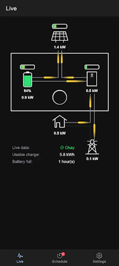 The live view compliments the view you already know from the "my sonnen" app by adding utilization of your solar panels, battery and inverter. You provide the capacity of your panels and the app reads the limitations of your system directly from your installation including battery capacity, battery max input/output and inverter max output. By calculating and showing the utilization directly in the app, it makes it easier to spot bottlenecks in your energy flow.