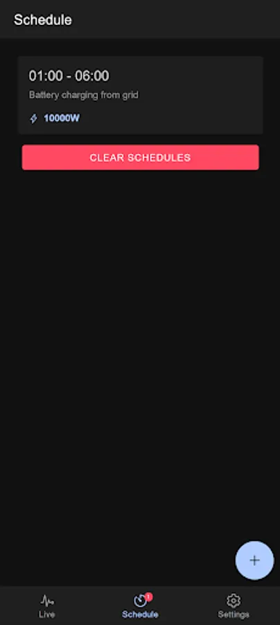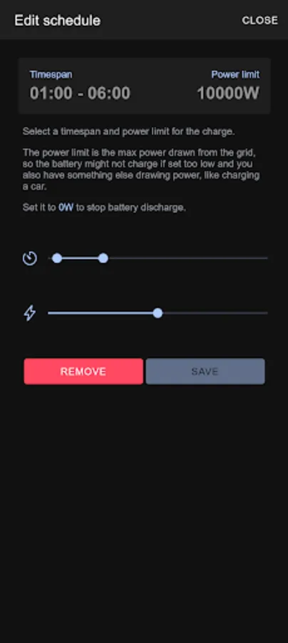 Setup scheduled charge events for charging your battery from the grid e.g. at night or preventing battery discharge with a simple intuitive interface.