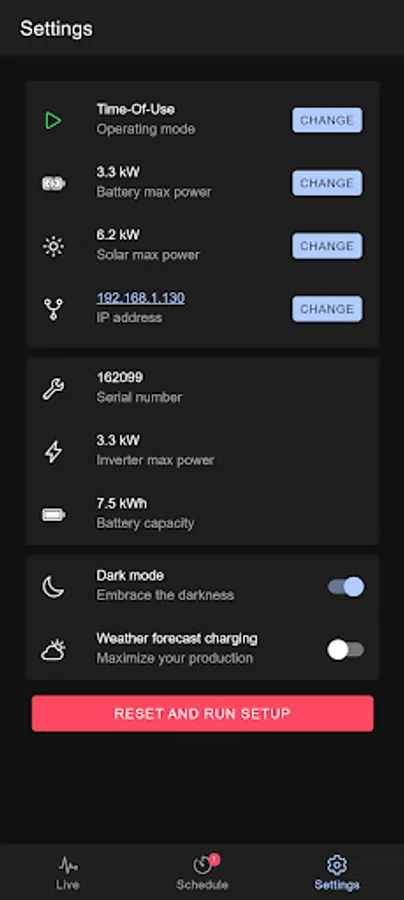Boost your sonnen product experience by getting a more detailed real-time view of your energy flow and access to changing the system configuration directly from the app using your installations built-in API.