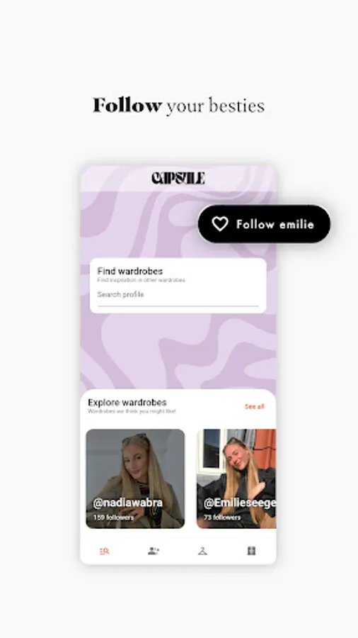 When downloading the CAPSULE app, you will become a part of a global, fashion-loving, wardrobe community consisting of women from all over the world. Find and share outfit-inspiration within the community, follow your favorite style icon’s closet, and share your wardrobe with friends and family.