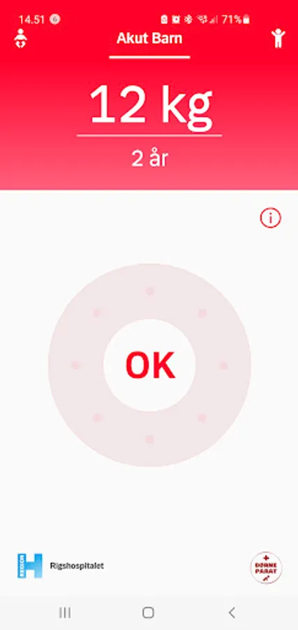 - By turning the wheel on the front of the Acute Child, age and weight are selected. When "OK" is pressed in the middle of the wheel, guide sheets corresponding to the selected weight are presented