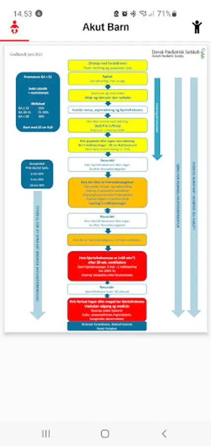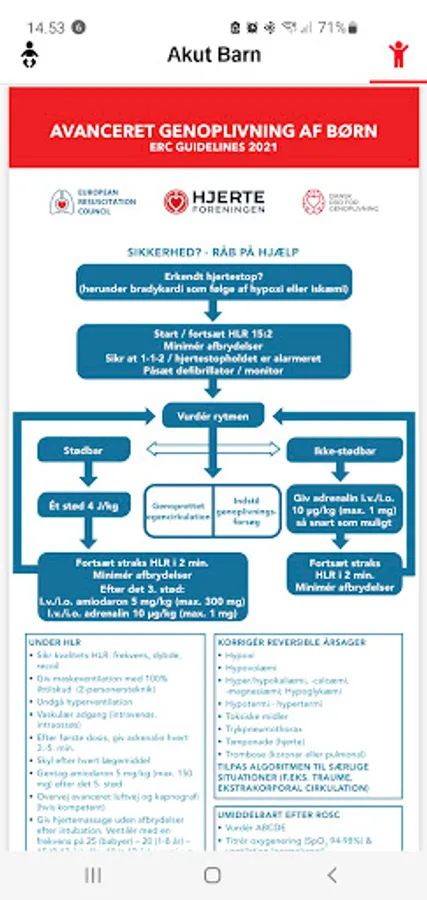 - Resuscitation algorithms are available directly from the front page by clicking on resp. baby icon and children icon.