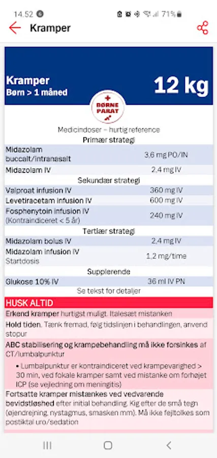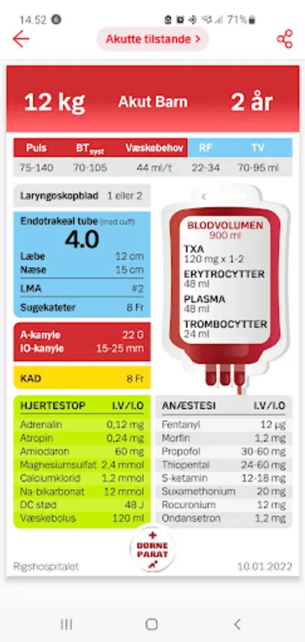2. Treatment guidelines for 29 acute, life-threatening pediatric conditions as well as guidance in general ABCDE assessment and pain treatment and sedation of children. The instructions are adapted to the chosen weight and cover a minimum of the first 30 minutes of treatment