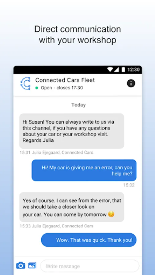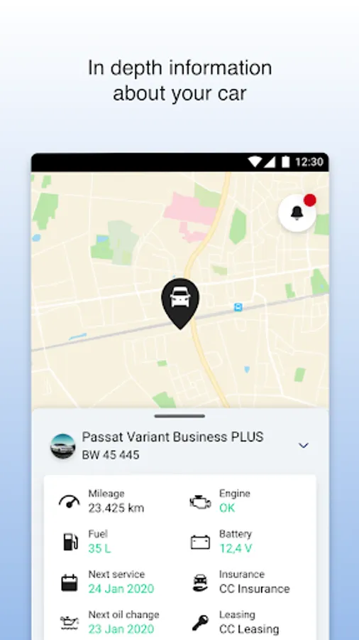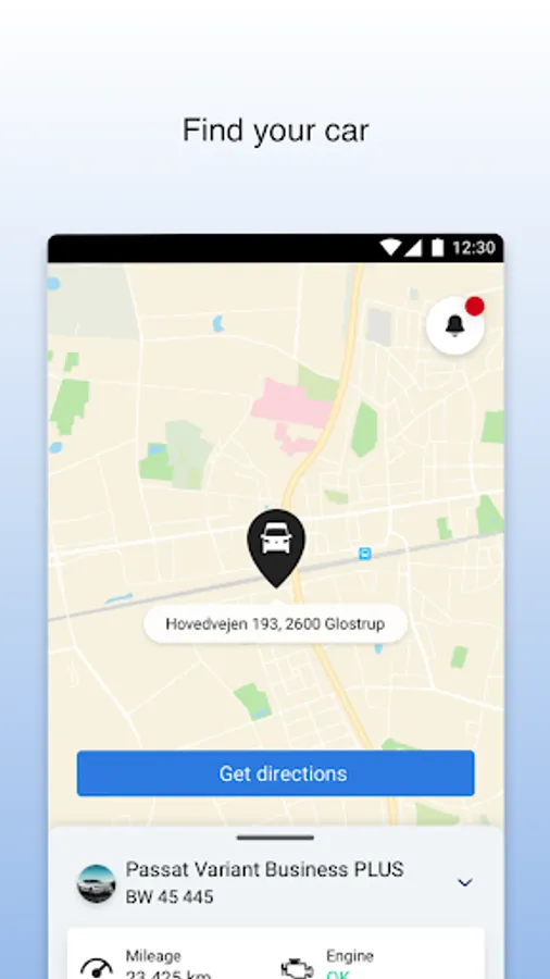With the smartphone app ConnectedFleetCar you will as a driver get access to a number of information about your vehicle which can be useful during a long work day. For example: you can always check where the vehicle is parked and see how much fuel is left in the tank. That way you don't have to worry about the vehicle during the day but rather focus on what matters - your work.