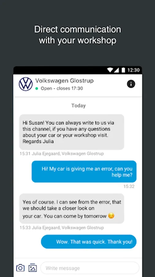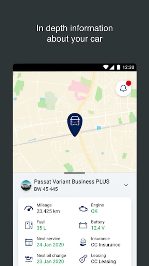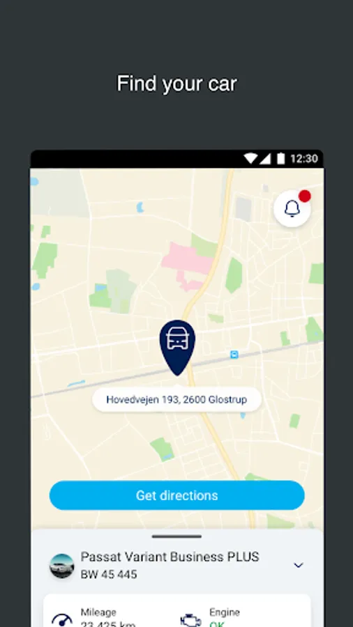 With the smartphone app MinVolkswagenFleet you will as a driver get access to a number of information about your vehicle which can be useful during a long work day. Fx. you can always check where the vehicle is parked and see how much fuel is left in the tank. That way you don't have to worry about the vehicle during the day but rather focus on what matters - your work.