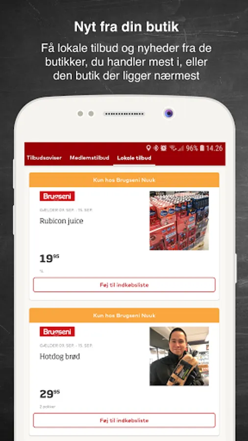 Always check the Brugseni app for items at extra good prices in your local store - they are only available in the app. Your local store is the store you have chosen as your affiliate store when you signed up for Kalaallit Nunaanni Brugseni, and you can choose another at any time. The app also has news, events and much more from your local store.