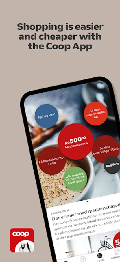 There are many good reasons to use the app, even if you aren’t a Coop member. You can easily create a profil as a non-member and get access to features like Scan & Pay, games, 'Fordelskonto' (benefits account) and a host of offers.