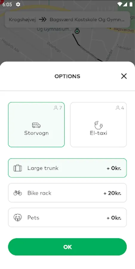 As soon as you have this app on your phone, simply enter the location you want to go to, and one of our drivers will transport you there quickly and securely. We have a taxi close to almost anywhere in Denmark, and we'll let you know the cost before you place your booking. If you're environmentally conscious, an electric taxi might be the best option for you and may be selected directly in the app, at no additional cost to you. Do you require an eight-passenger van, travel with a bicycle, or need more capacity for your luggage? Our app matches all your needs – just make your selection, and place your booking in seconds.