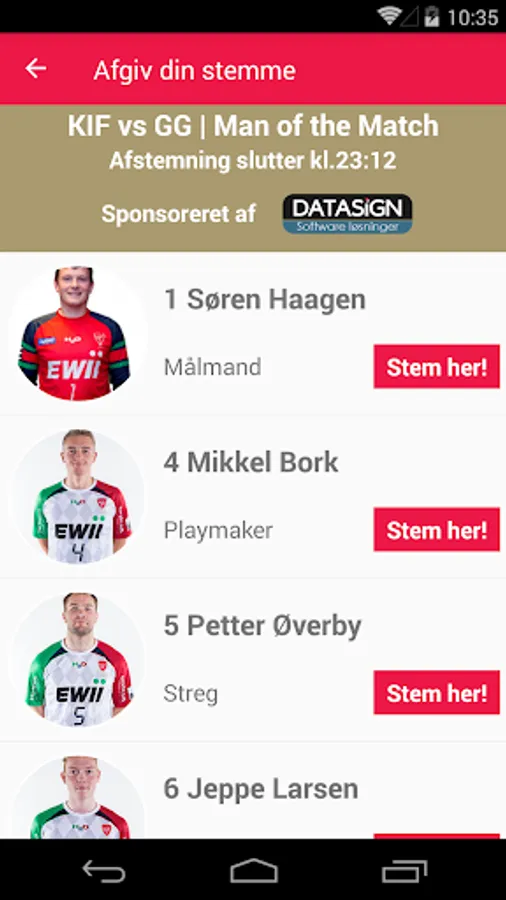 You can help choose who from KIF Kolding, to win Man of the Match.
