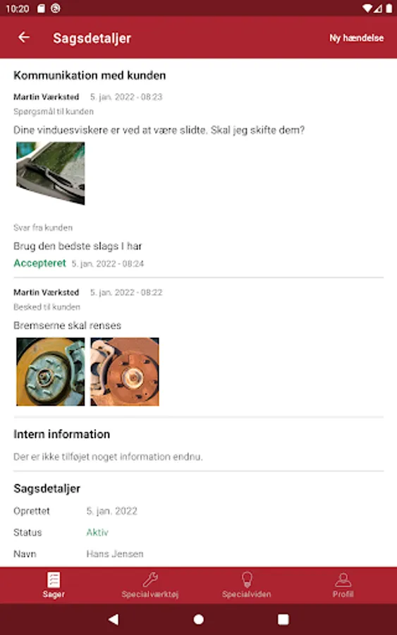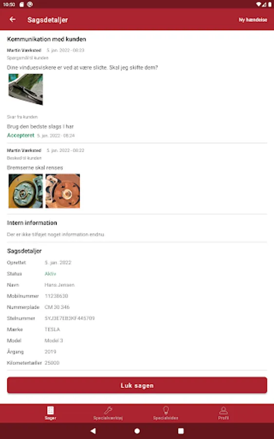 App for members of the Danish Automotive Industry Council where you can communicate with your customers both with pictures and text, share your competencies with your colleagues, and find special tools / equipment.